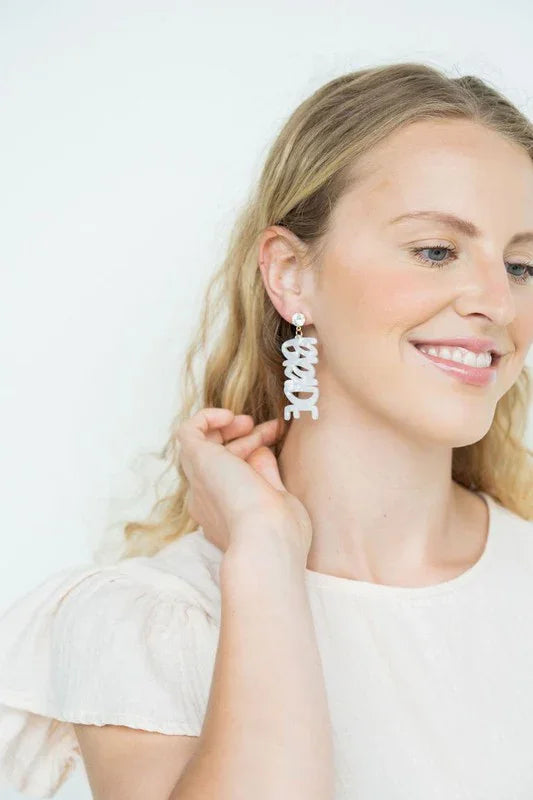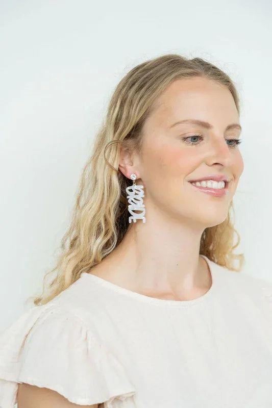 Pop the champagne for the bride-to-be! These Bride Earrings are perfect for all the celebrations to be had in this exciting time. Think engagement party, engagement photos, bridal shower, and bachelorette party!