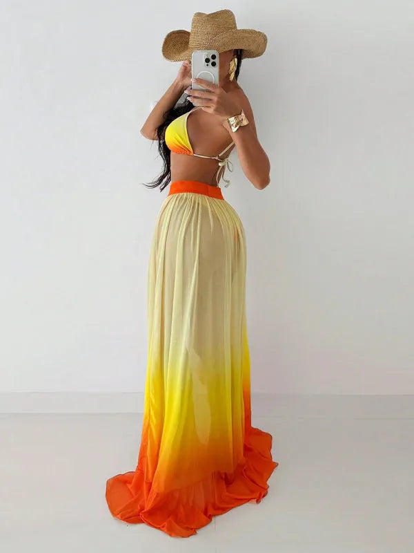 Sunset Bikini with Ruffled Hem Three Piece